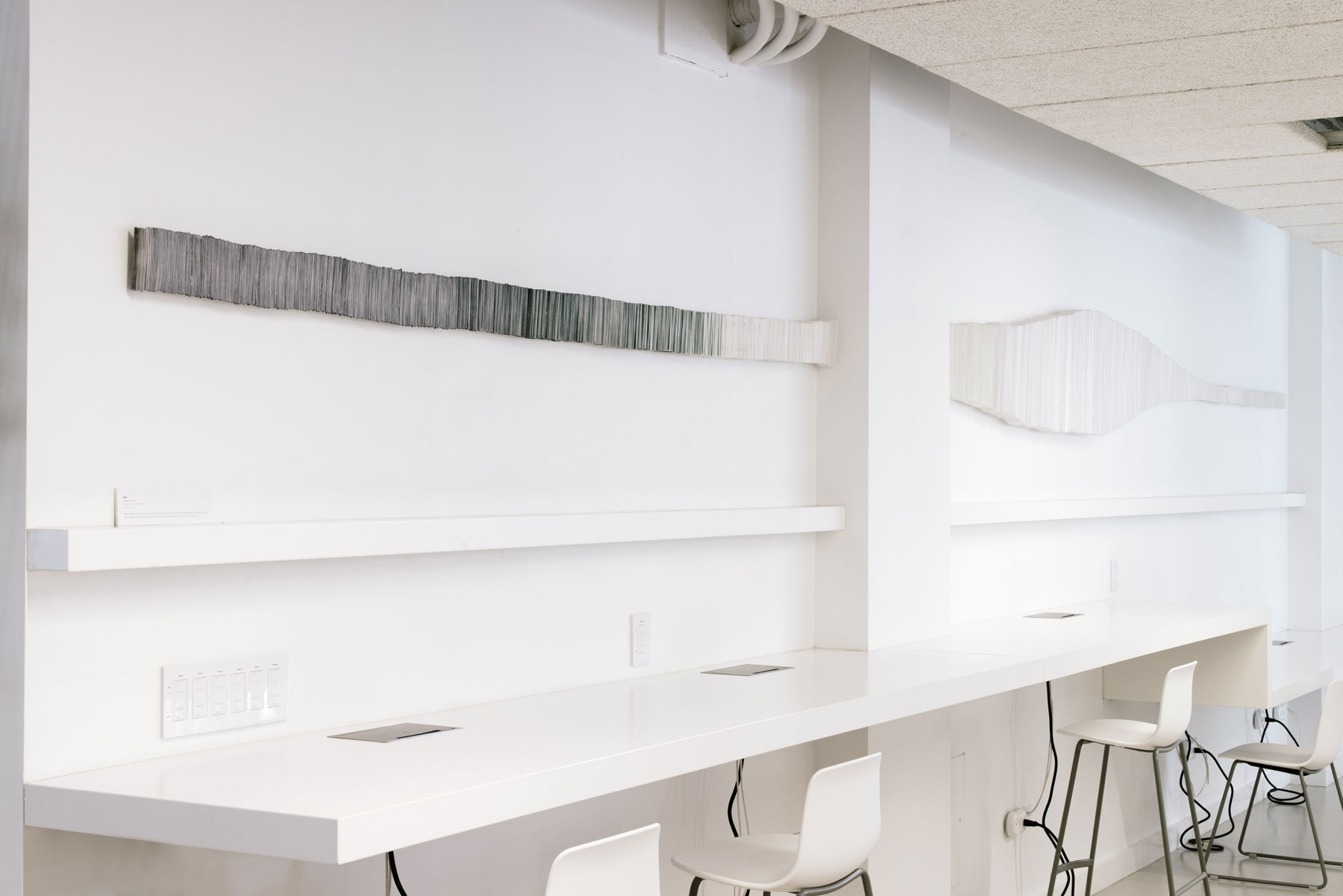 Created during tenure at INDO. The National Resource Defense Council (NRDC) recently moved into a Studio Gang designed space within the historic Lyric Opera Building. INDO repurposed all of their old, saved collateral, from business cards to promotional booklets, in a custom work of art. The wall-mounted pieces wrap walls and columns throughout the space in the spirit of rippling water.