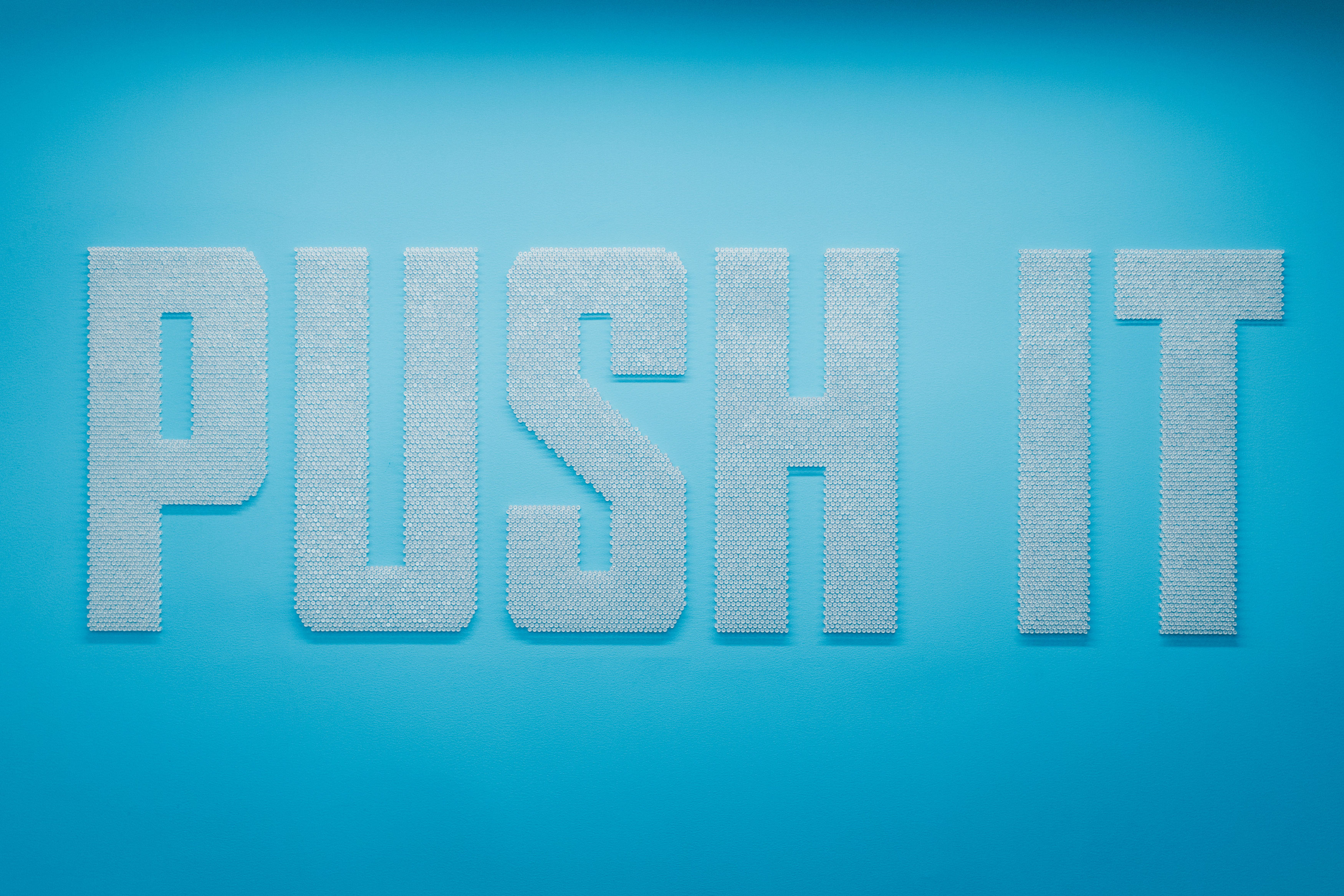 Sprout Social is a company that wants to push their boundaries and inspire their employees to do so too. This installation of about 12,500 clear push pins graces their walls to invigorate the day to day of their employees. This piece was designed by Sprout Social staffer Rusty Cook and installed by us.